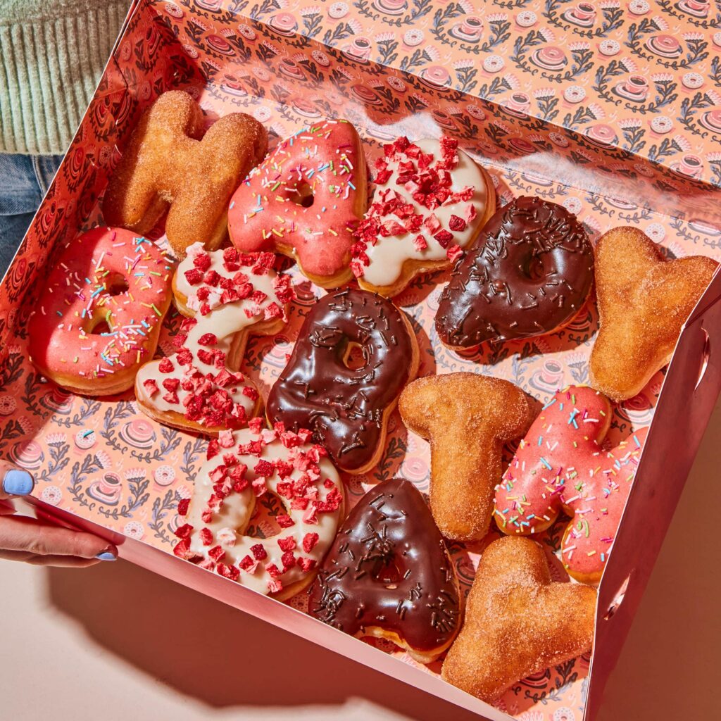 Have a message you want to send in donuts? Well, you’ve come to the right place! We can prepare all letters from A to Z as well as numbers, but please note, punctuation marks or other symbols aren’t possible.