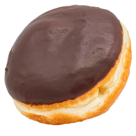 A fluffy donut filled with house made vanilla cream and covered with a dark chocolate ganache made with Original Beans chocolate.