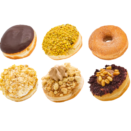 Who wouldn’t want to eat the donuts Bram loves? This box is perfect for everyone who want a selection of flavours and doesn’t want to choose. It contains 6 of our all-time favourites: Boston Cream, Cinnamon Sugar, Bienenstich, Pistachio Dream, Apple Caramel and Brownie Caramel Peanut.