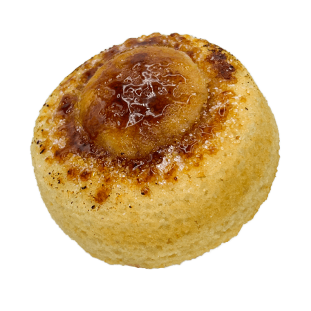 A vanilla cake donut inspired by the classic dessert. Soft, baked vanilla dough filled with silky vanilla custard, finished with a layer of brown sugar that’s carefully torched for that signature crackly top. Creamy on the inside, caramelised on the outside. Our cake donuts are baked like cakes (not fried!) and shaped like donuts — a soft, fluffy alternative to our classic treats.