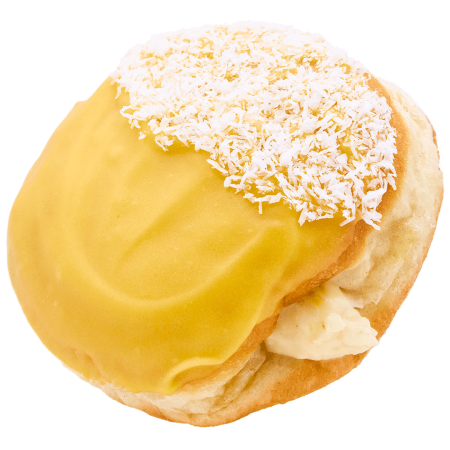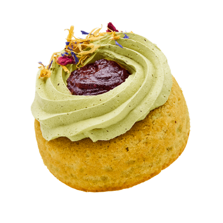 This donut is inspired by our customer Emi, who suggested this delightful flavour during our customer flavour contest. It’s filled with delicious pistachio cream, covered with vanilla glaze, and topped with salted roasted pistachios for the perfect crunch.